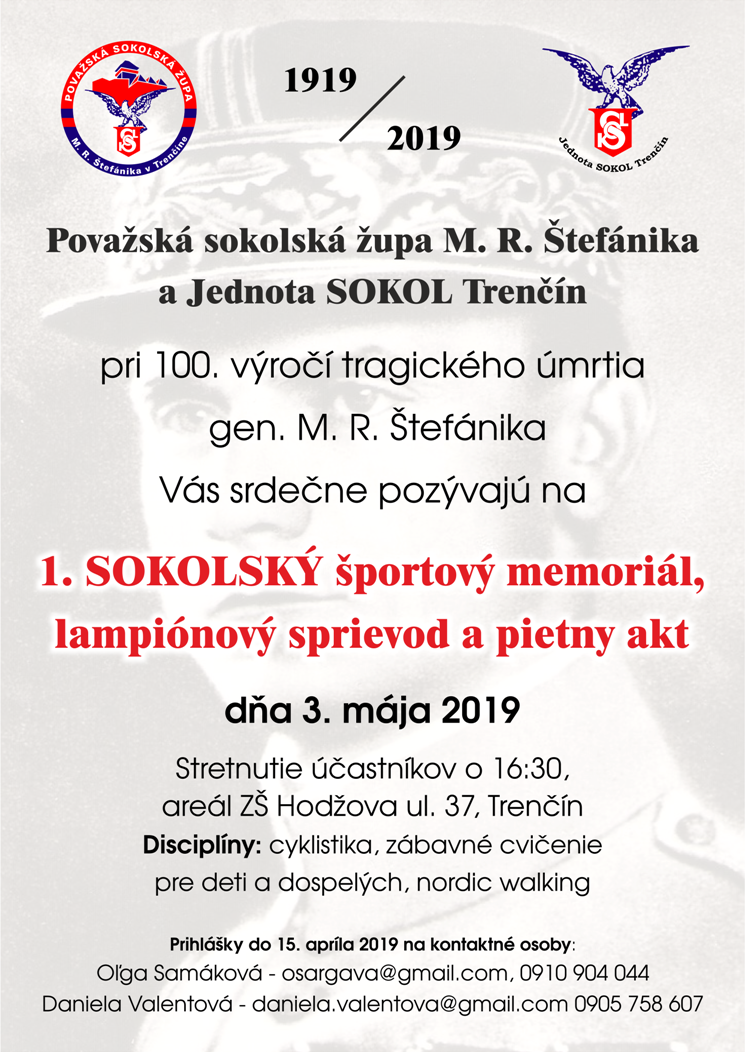 - 3. 5. 2019, ZŠ Hodžova ul. 37, Trenčín - 1.SOKOLSKÝ športový memoriál, lampionový sprievod a pietny akt. Propozície, Cyklo trasa, Správa, (foto)